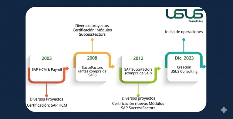 Somos una consultoría de negocios (empresa) constituida a finales del 2023 por un grupo de consultores que desde el 2008 fueron pioneros en México en certificarse e implementar la plataforma SAP SuccessFactors, además de tener experiencia en la solución SAP HCM y SAP payroll.